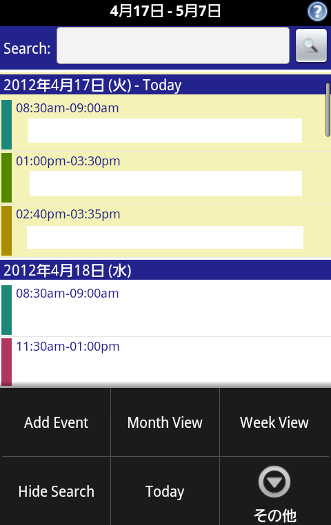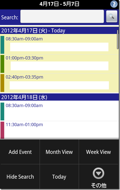 バーチカル表示がうれしいAndroidのカレンダーアプリ「Business Calendar」(7) アジェンダ表示の検索を活用してみようと思う