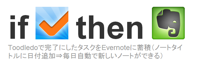 昨日、「Toodledoで完了にしたタスクをEvernoteに蓄積する」ことを、iftttで自動化する方法があった!ということを、書きました。