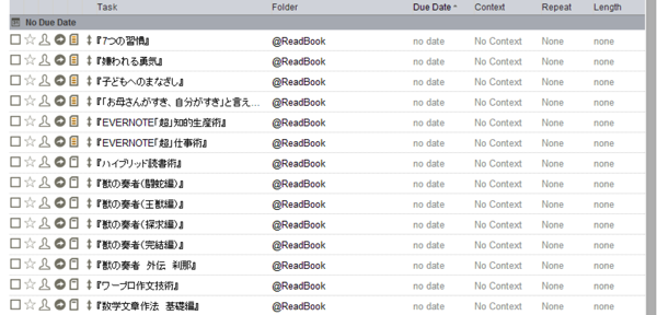 - Toodledoに、読書専用Folderを作り、『書名』という形式のタイトルで、本をタスクとして登録する