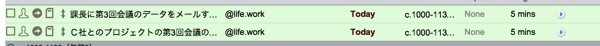 課長からの依頼に応えるには、「C社とのプロジェクトの第3回会議のデータを探す」「課長に第3回会議のデータをメールする」という行動を取る必要があります。が、この2つの行動は、Toodledoの「Dailyタスクリスト」に登録されていません。