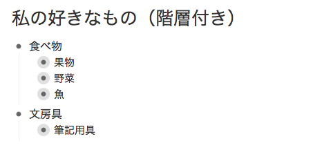 タイトルである「私の好きなもの(階層付き)」をダブルクリックすることで、